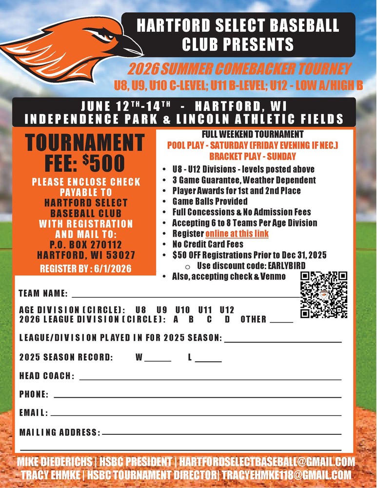 2026 SUMMER COMEBACKER TOURNAMENT REGISTRATION IS NOW OPEN!